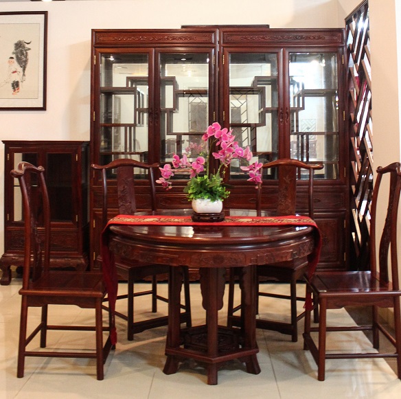 紅檀橢圓餐臺配明式餐椅